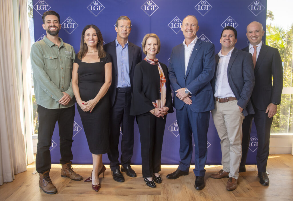 (Left to Right): Tom McQuillen, Amanda MacDonald - Head of Sustainable Investment, LGT Wealth Management, H.S.H. Prince Max von und zu Liechtenstein – Chairman of LGT Group, The Hon. Julia Gillard AC – Former Prime Minister of Australia, Michael Chisholm - CEO LGT Wealth Management, Tom Kline - General Partner, Climate Tech Partners, The Hon. Matt Kean – Chair, Australian Government Climate Change Authority