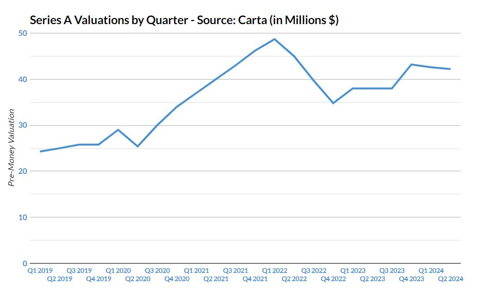 While it is difficult to obtain sufficient unbiased data, anecdotal evidence from Carta shows that Series A valuations in the US have decreased from US$48.7M in Q1 2022 to US$42.2M in Q2 2024 (-13.5%), highlighting a real market shift.